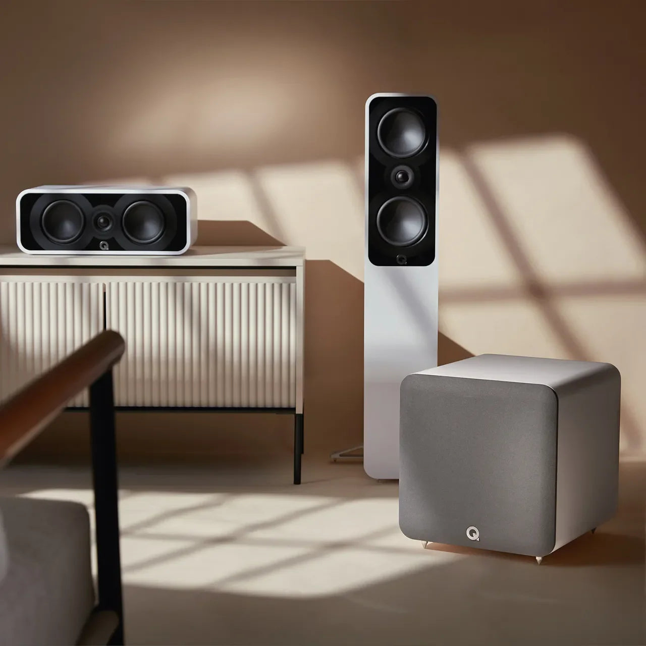 Q SUB’s minimalist clean design means it can blend discreetly into any room or proudly displayed. It arrives in two modern-yet-classic finishes: Satin Black with a black grille, or Satin White with a grey grille - joining 3060S to complete our subwoofer family.